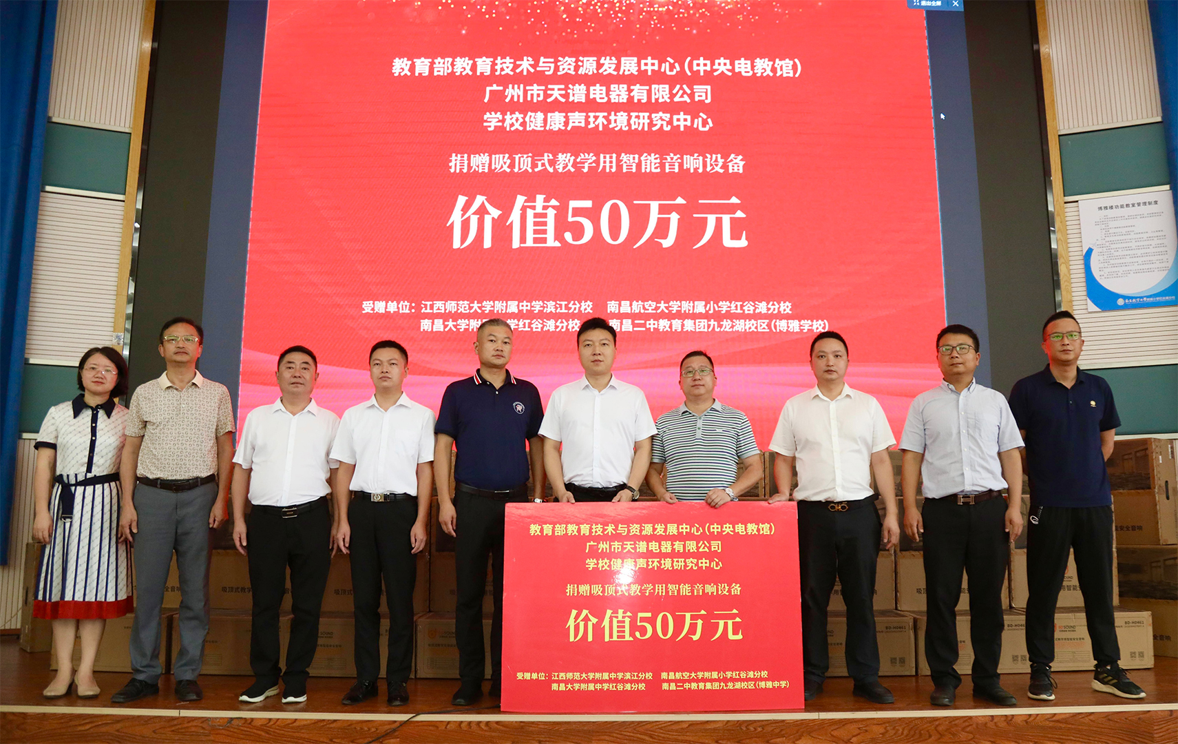 2022-07-28 7月27日上午,“百城千校健康声环境公益行动”吸顶式教学音响设备捐赠仪式在南昌航空大学附属小学红谷滩分校举行,教育部教育技术与资源发展中心(中央电教馆)学校健康声环境研究与建